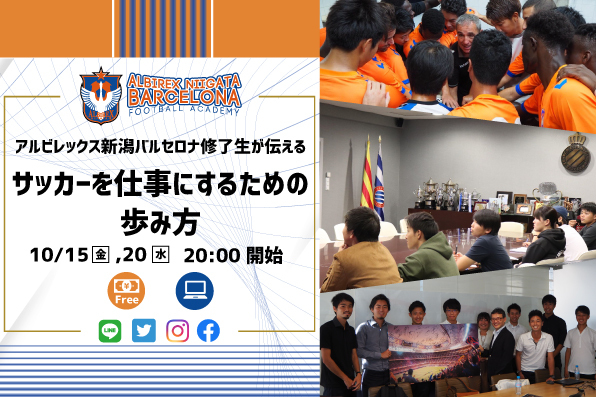 サッカー留学プログラムを展開する「アルビレックス新潟バルセロナ フットボールアカデミー」が、【アルビレックス新潟バルセロナ修了生が伝える『サッカーを仕事にするための歩み方』】の開催を決定。